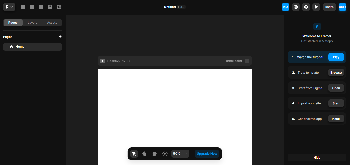 - Framer Dashboard: Upon successfully logged In, you will be redirected to the Framer dashboard.