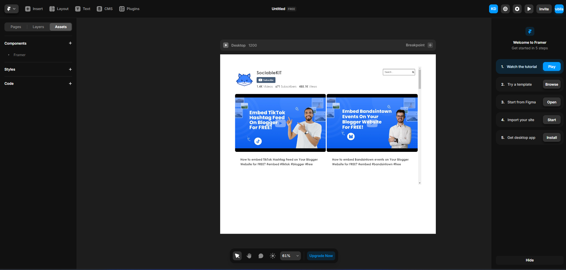 The second part is adding your Content Aggregator widget to your Framer website . After you customize your Content Aggregator widget and copied the embed code, it is time to add it to your Framer website . Follow the steps below.